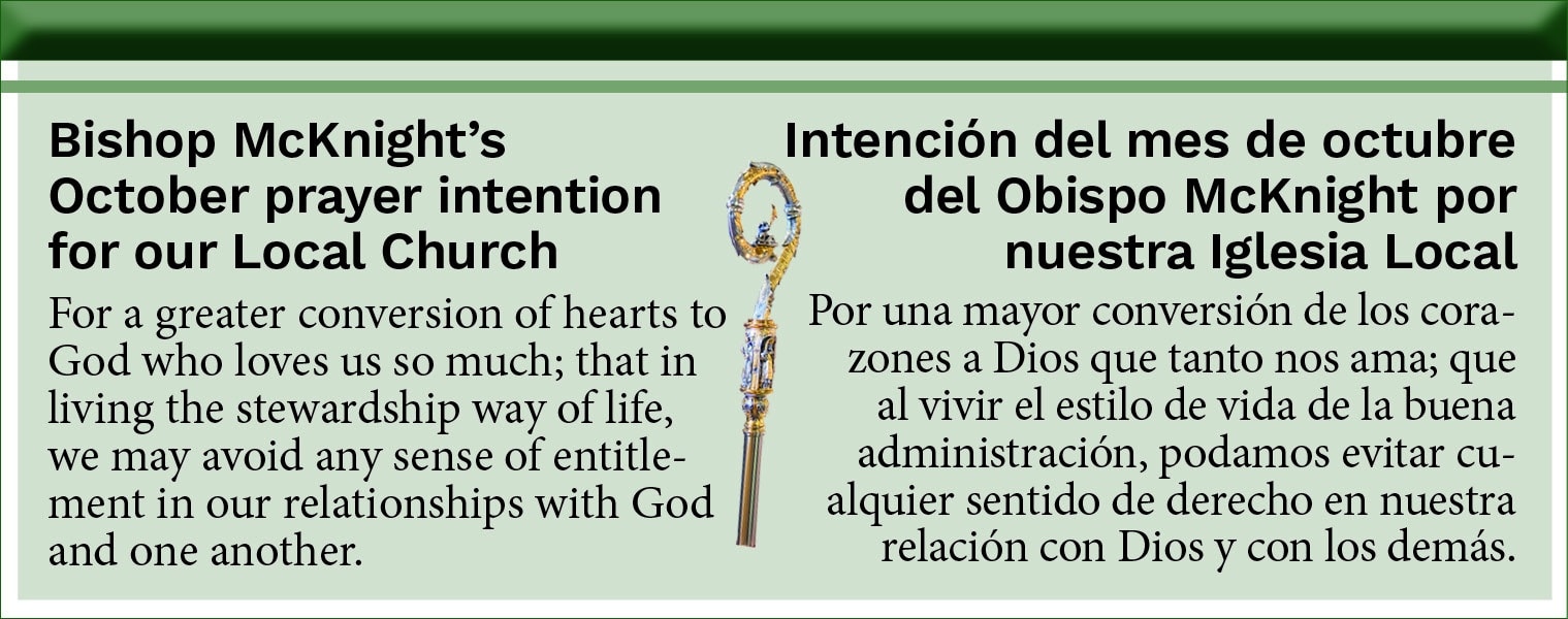 As Bishop McKnight encourages us in his pastoral letter, “Shaping our Future Together: Parishes on Mission Together as Communities of the Beatitudes,” our diocesan pastoral plan, Shaping Our Future Together, can deepen our mission as a synodal local Church along the themes of the spirituality of stewardship, co-responsibility and parishes as centers of charity and sanctuaries of mercy.