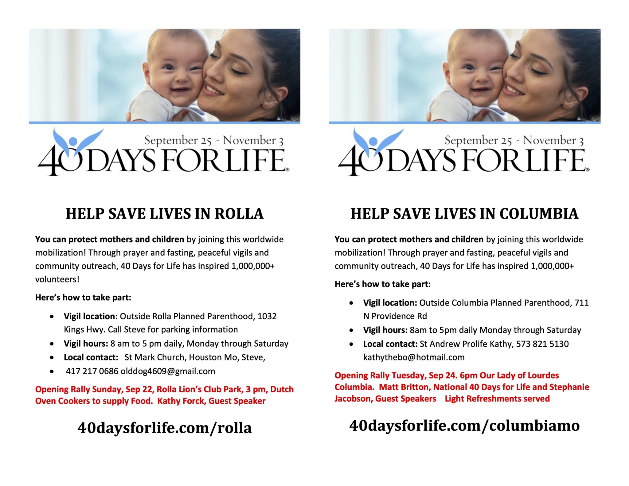 Para más información contacte a la oficina parroquial o al Diácono Enrique Castro al (573) 635-9127 o por correo electrónico a ecastro@diojeffcity.org.