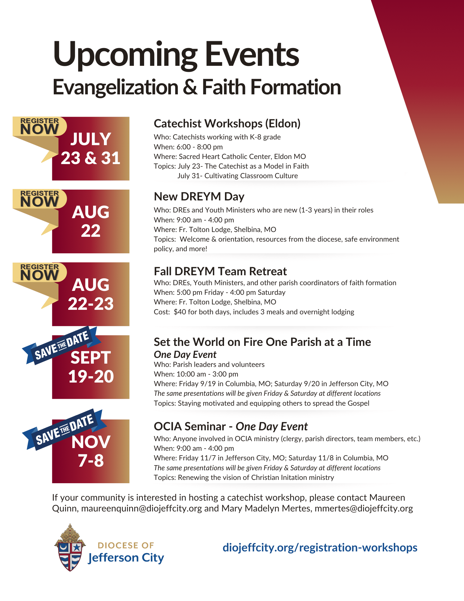 These free workshops will be available in five locations around the Diocese of Jefferson City from Sept. 12-14.