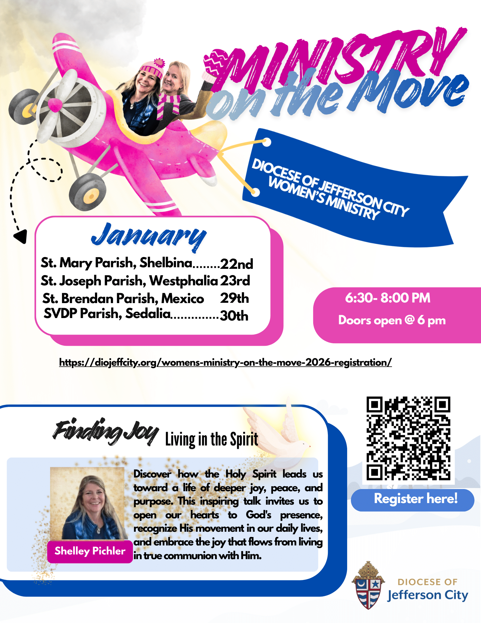 This January, the Diocese of Jefferson City Women’s Ministry will once again be 'On the Move,' traveling to different parishes across the diocese for an evening of faith, fellowship, and encouragement. Finding Joy: Living in the Spirit.