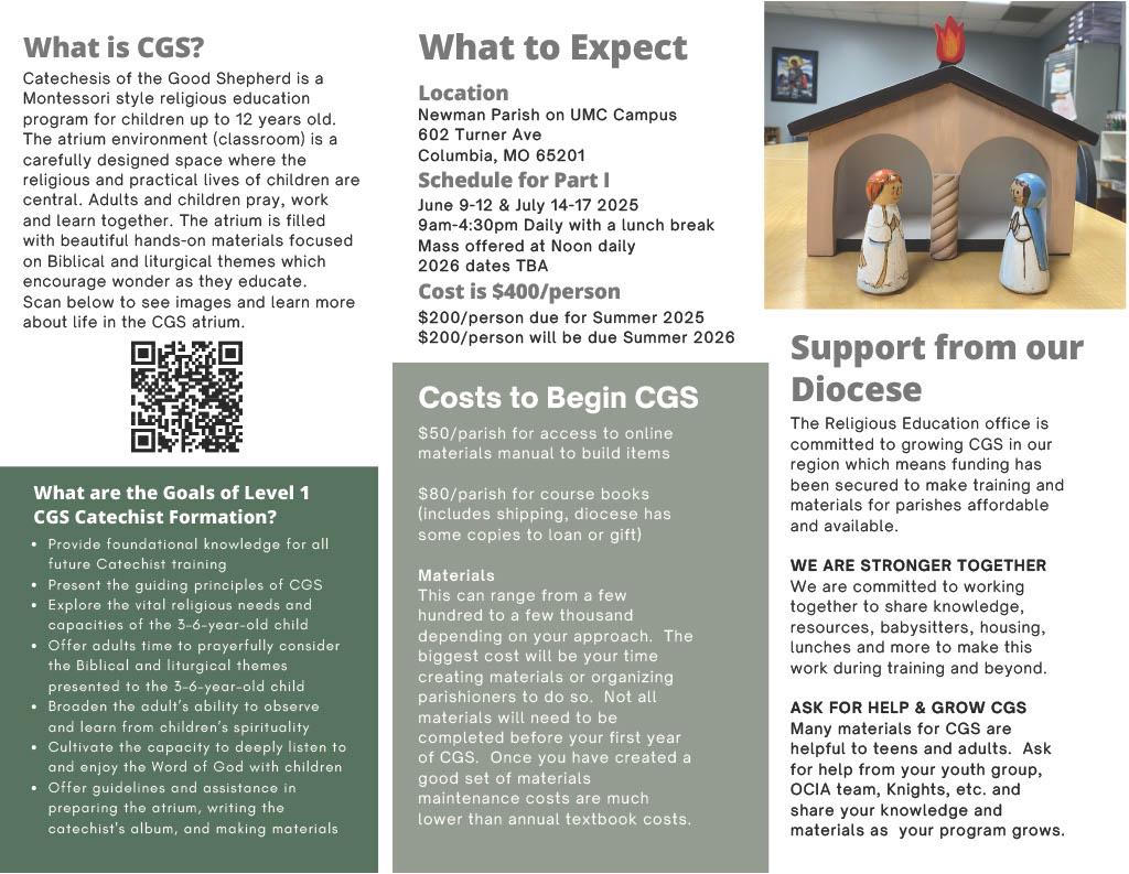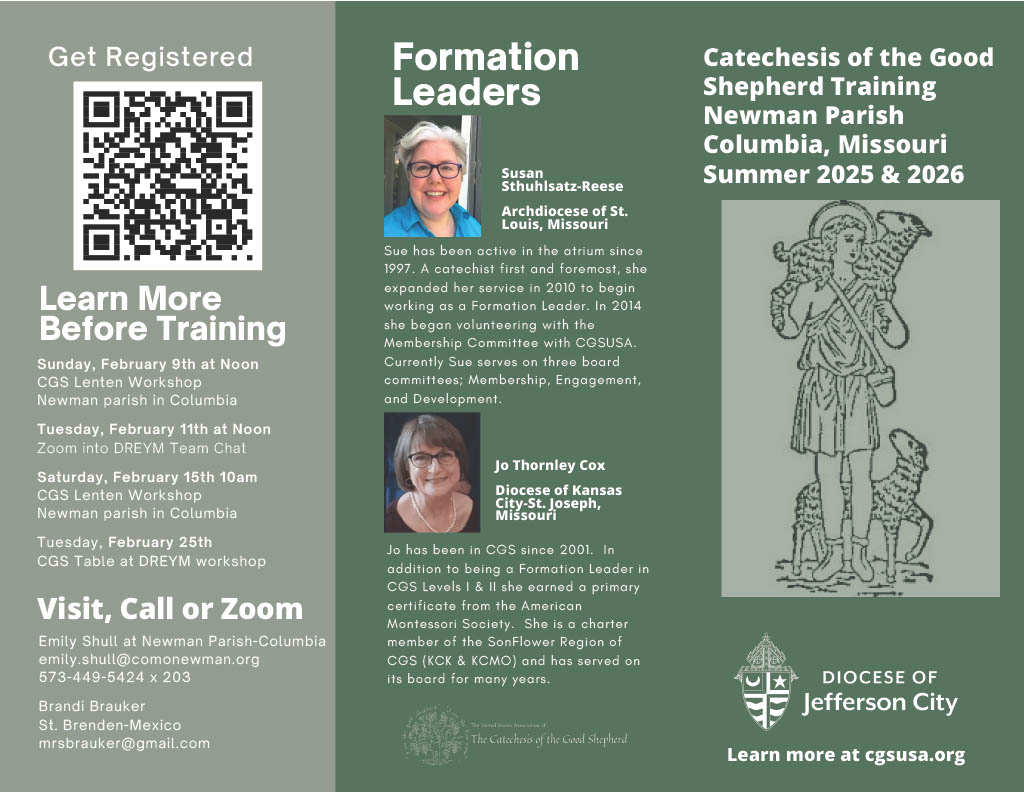 The Diocese of Jefferson City will be hosting Level 1 training for Catechesis of the Good Shepherd in 2 parts, Summer 2025 & Summer 2026.