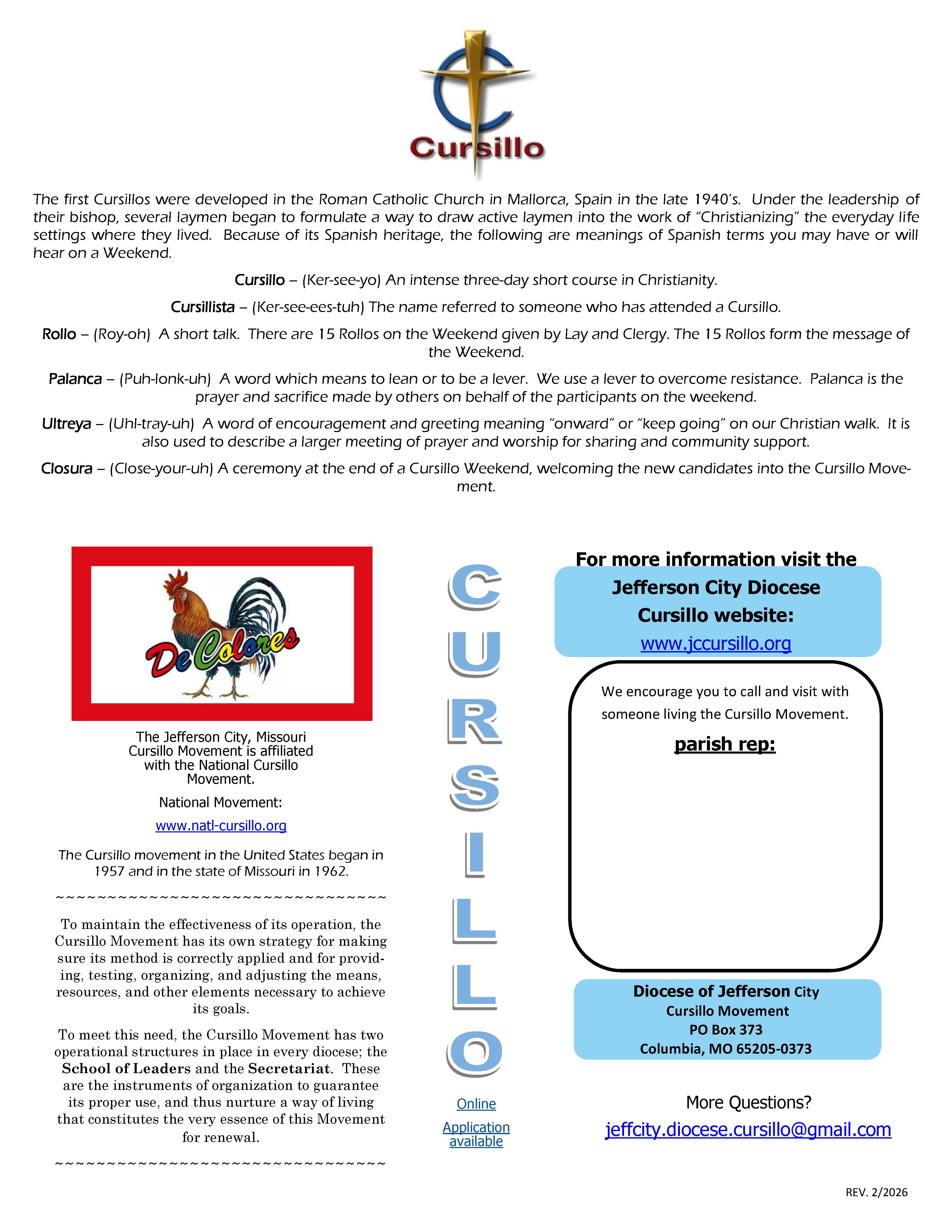 For more information or to find a sponsor contact: jeffcity.diocese.cursillo@