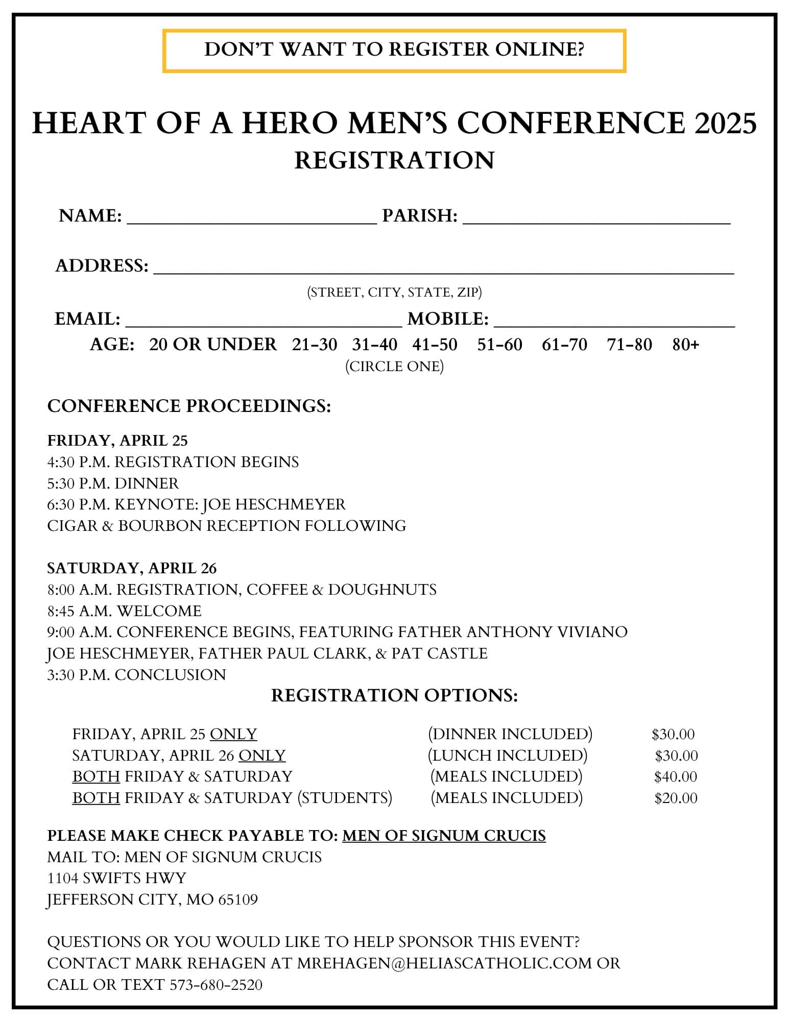 Heart Of A Hero Mens Conference Flyer Registration Page 2