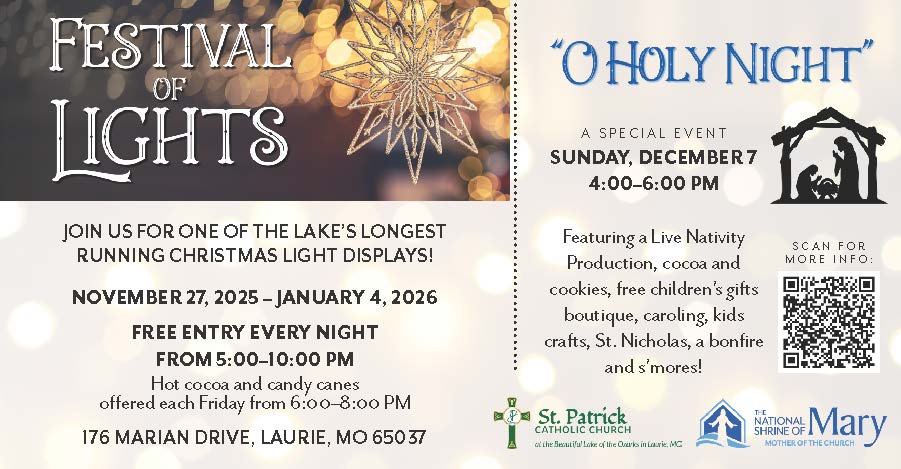 Festival of Lights - Join us for one of the lake's longest running Christmas lights displays. This free, family-friendly display has welcomed generations of visitors to experience the joy and wonder of the Christmas season. Created decades ago by Fr. Fred Barnett, the Festival of Lights continues to inspire thousands with its message of hope,… |