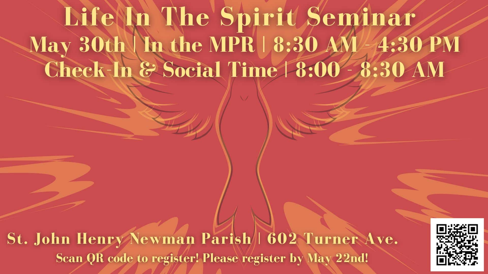 St. John Henry Newman Center (Columbia) 602 Turner Ave, Columbia, MO, United StatesAre you feeling tired, restless, unfulfilled or depressed or seeking more to life? Join us for the Life in the Spirit Seminar, Saturday, May 30, 8:30 am–4:30 pm, Multi-Purpose Room,…