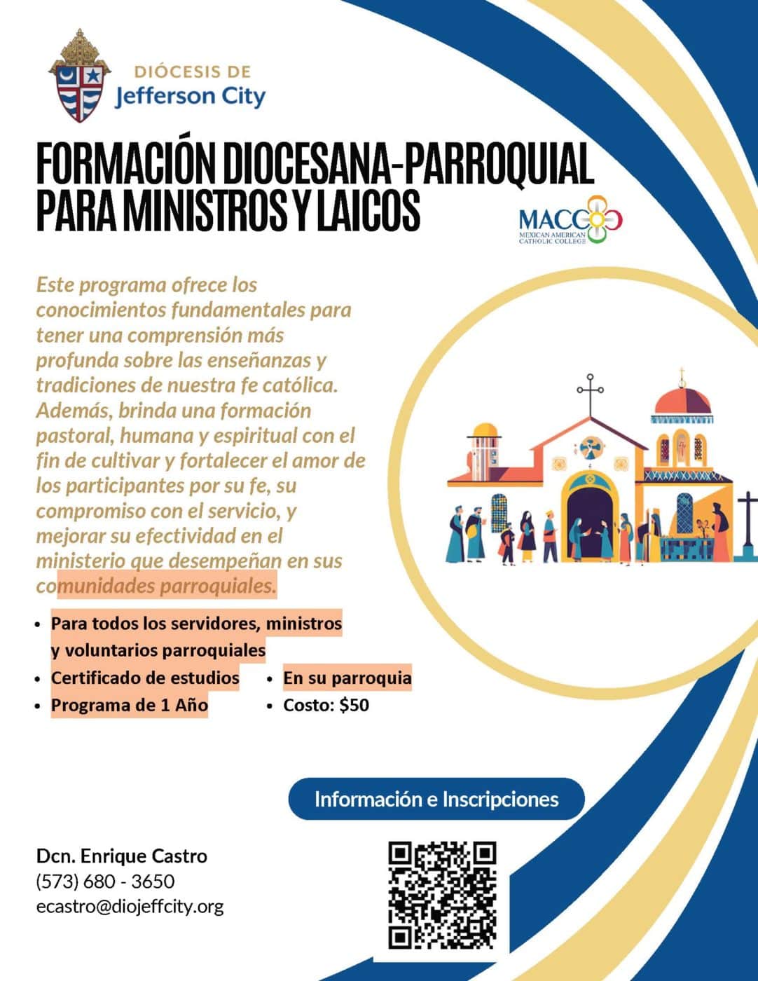 La Diócesis de Jefferson City, en colaboración con varias instituciones universitarias católicas, ofrece los siguientes programas de formación que ayudan a nuestras parroquias a formar y preparar a los laicos y servidores de sus comunidades parroquiales.