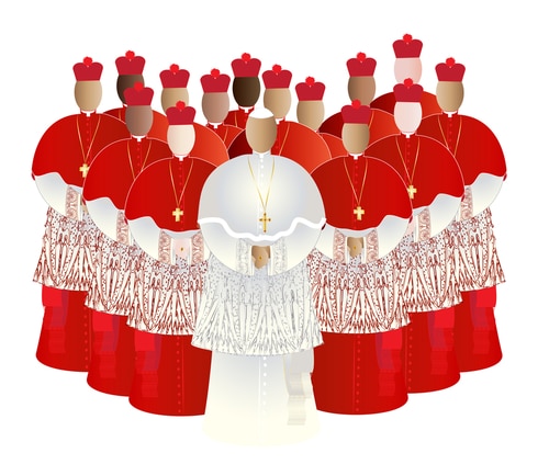 Pope,With,Cardinals,In,Choir,Dress,,Conclave,Or,Roman,Curia
